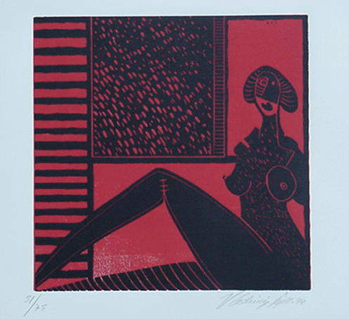 Vladimir Cora - Linoleum Block Print, 2 Color (2 Blocks), Edition of 75, 12" x 12", 1998