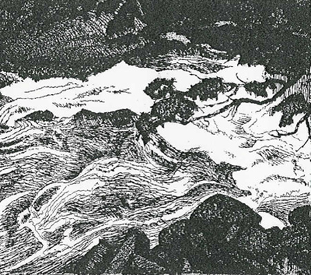 Howard Hitchcock, Etching, "White Water" , 4 " x 4 3/8", 19