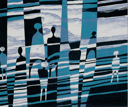 Howard Hitchcock, Linoleum Block, "Crosscurrents" , 10" x 12