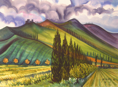 Bill Anderson watercolor "Umbria, Italy" painted in 1998, size: 22" x 30"