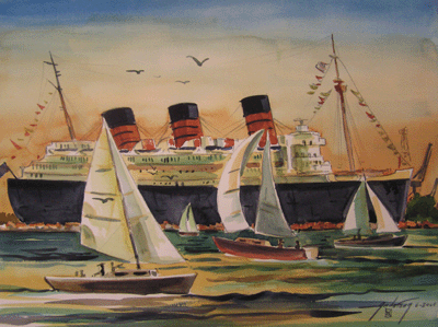 Bill Anderson watercolor "Queen Mary" painted in 2004, size: 22" x 30"