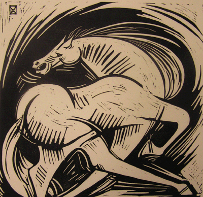 Bill Anderson, Linoleum Block Print, "About Face" ,created in 19