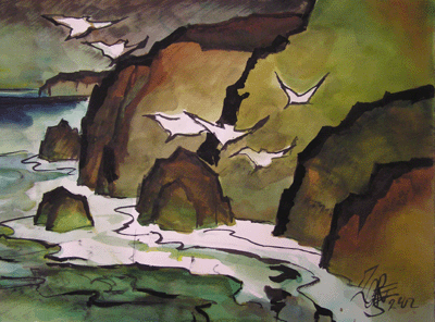 This beautiful watercolor was painted in 2002 by Milford Zornes. Full sheet 22" x 30".It is signed and titled by the artist, "Baja Coast" and is in excellent condition.